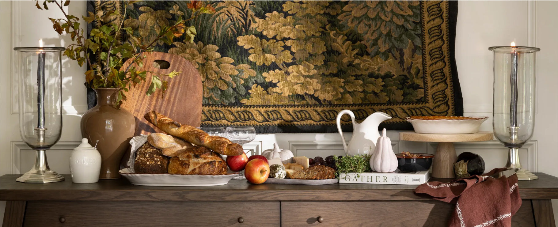 Memories are made over shared meals, drinks, and appetizers. Either around a dining table or outdoor coffee table, the kitchen serveware used in these moments can make the scene effortlessly beautiful. Whether you choose glazed ceramic bowls, glass details, rustic wood boards, or refined marble serveware, the right pieces can make an entire look come to life. From pitchers to trays, pedestals to bread boards, this selection of kitchen serveware allows your dining spaces to feel composed and collected.