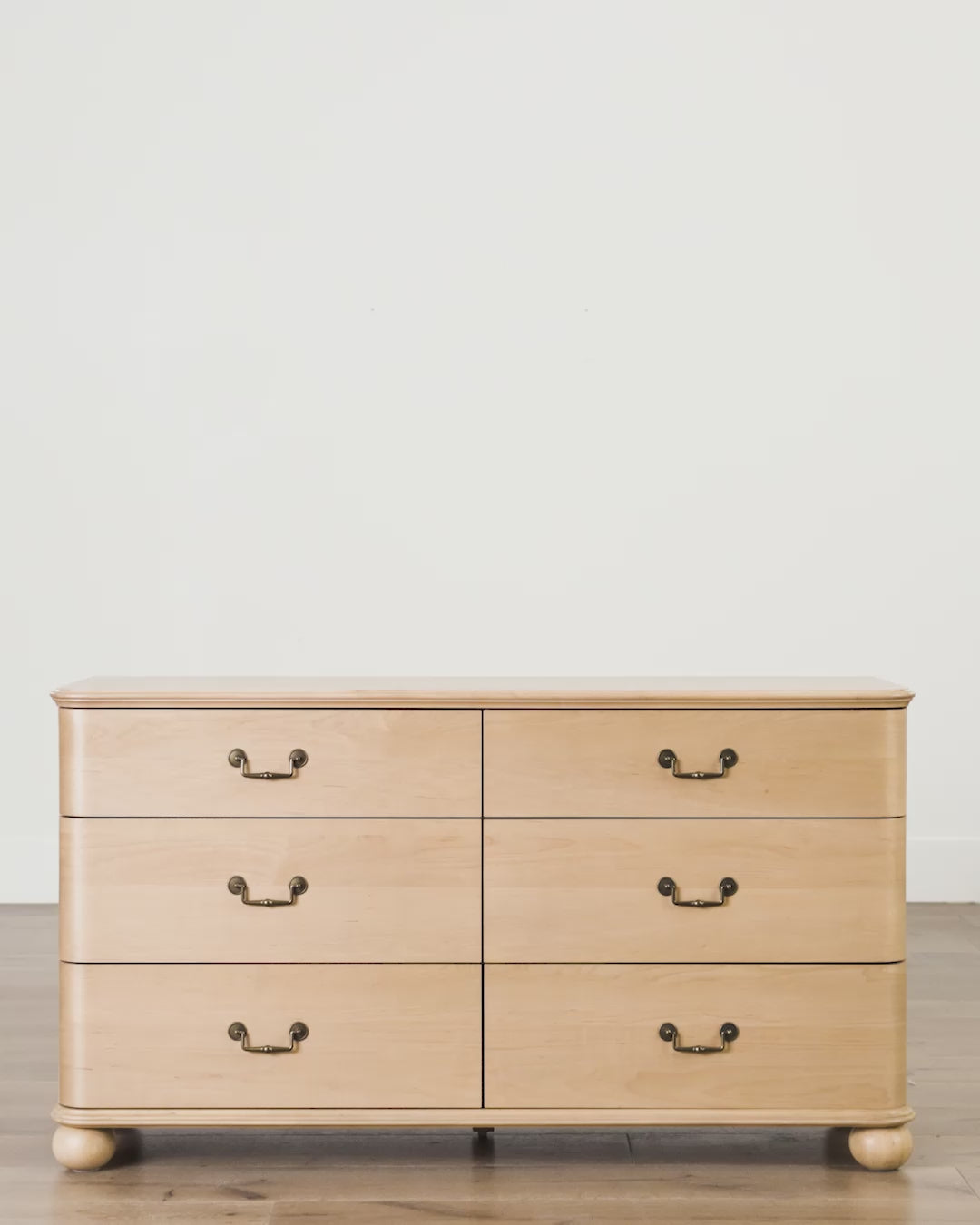 The Delaney Dresser blends timeless charm with practical function. Crafted in a light wood finish with classic brass hardware and rounded bun feet, it offers enduring style and generous storage. Its balanced design feels equally at home in traditional or transitional spaces, bringing warmth and refinement to the bedroom.