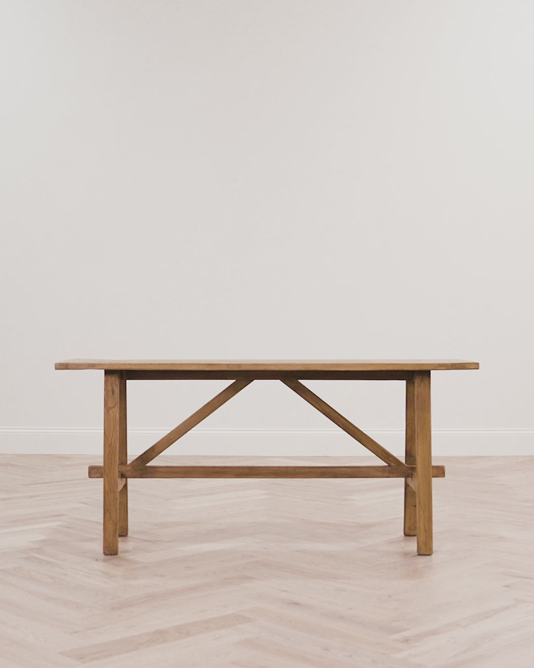 The Hampstead Console Table has an heirloom feel that brings a rustic playfulness to your space. The console is made from reclaimed elm wood with an architectural frame. Traditional in design, its beauty comes from elevated details that speak to its craftsmanship and complement the organic material.