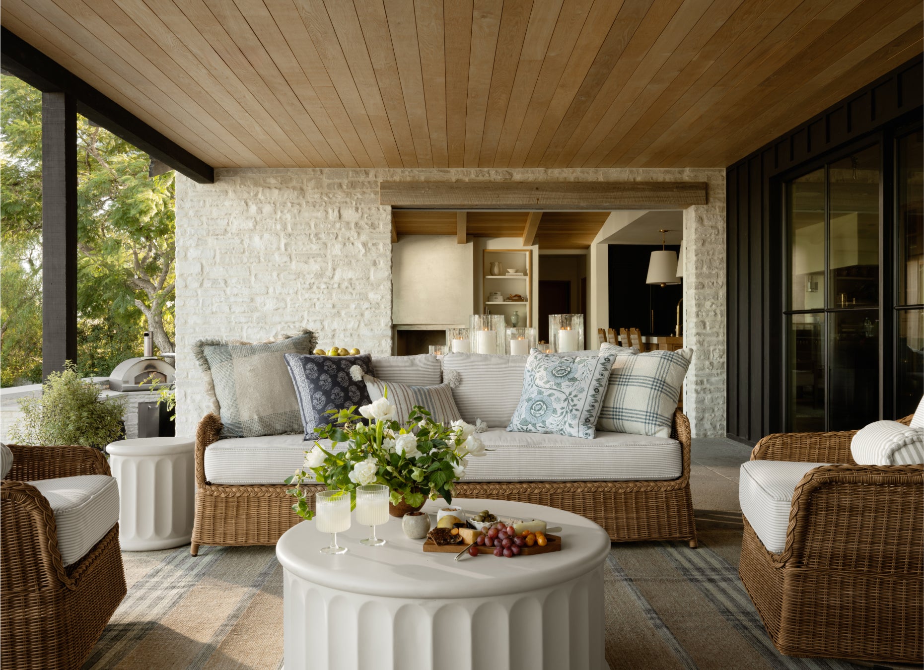 Connect your outside living spaces with your interiors by styling with textiles that look and feel like they can go indoors.