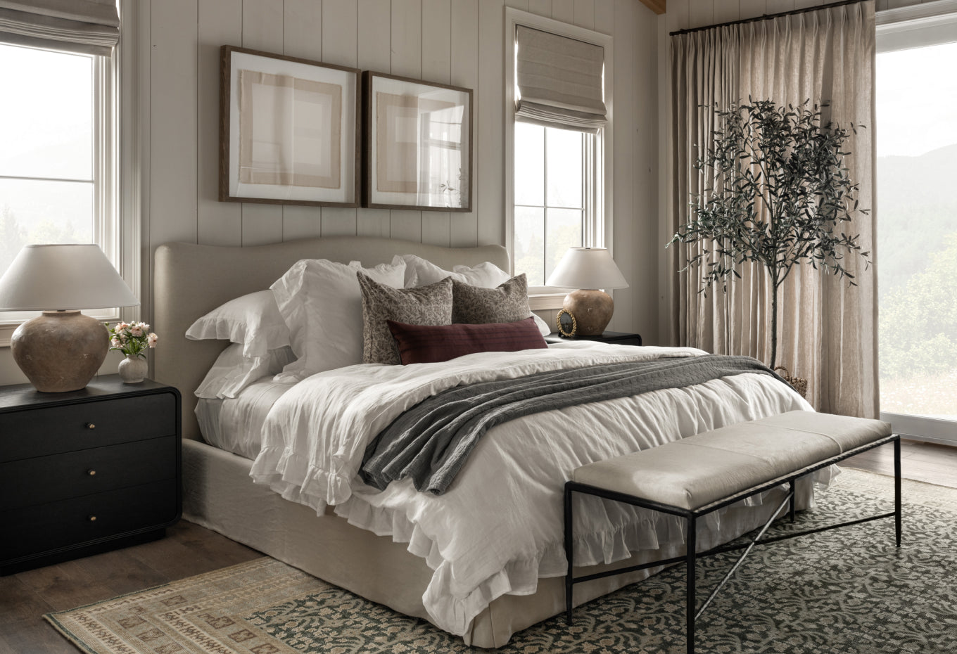 Create an inviting space filled with purpose by layering bedding with whimsical details, balancing patterns and solids, and establishing cozy vignettes.