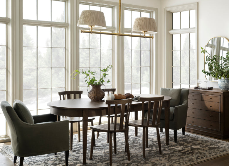 English oak, this season’s defining wood hue, instantly elevates the dining room with richness and depth, creating a strong foundation to layer upon.