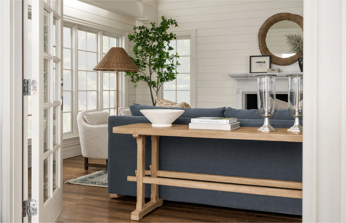 Create a subtly coastal look that captures the essence of summer through a tight color palette, woven materials, and styling that evokes the feeling of a waterside vacation in your own home.