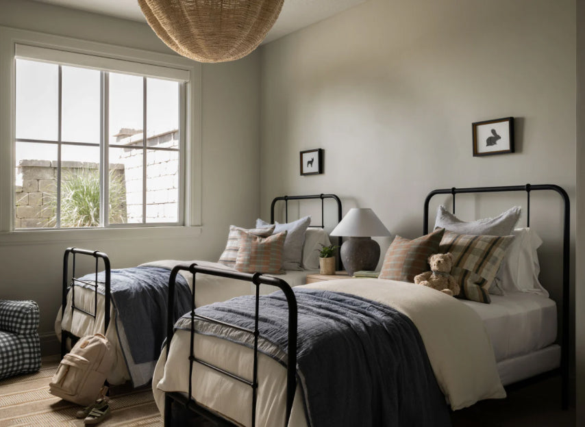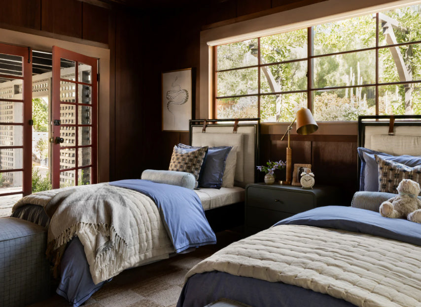 Layer classic bedding with seasonal pillows for a playful look that’s easy to refresh.