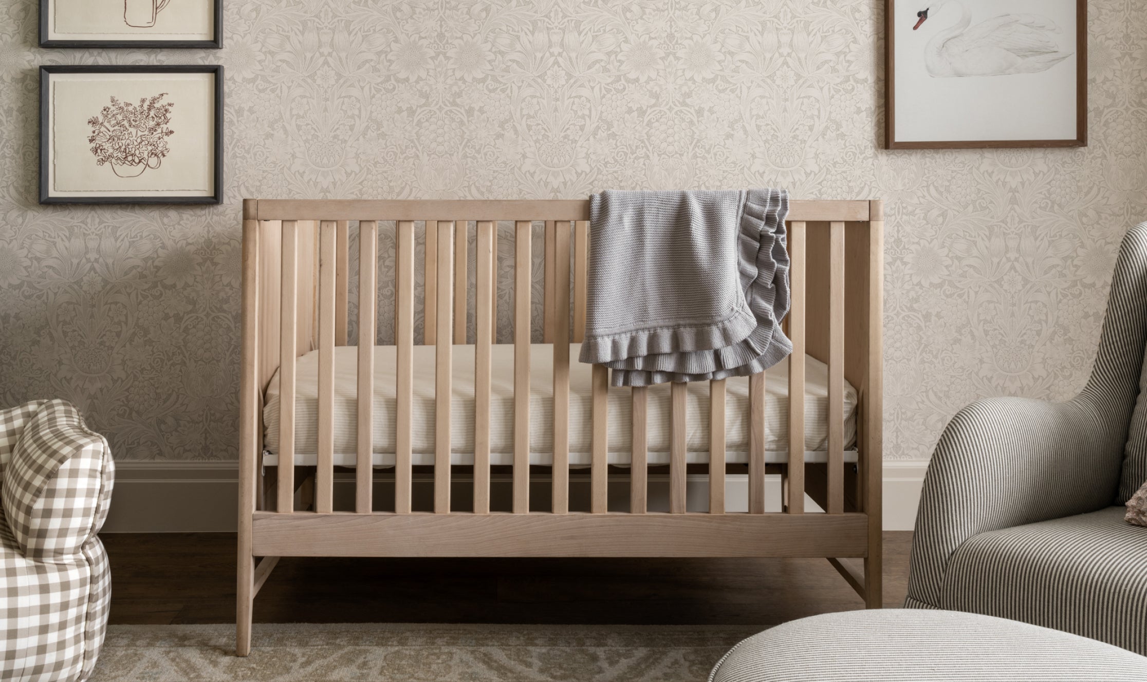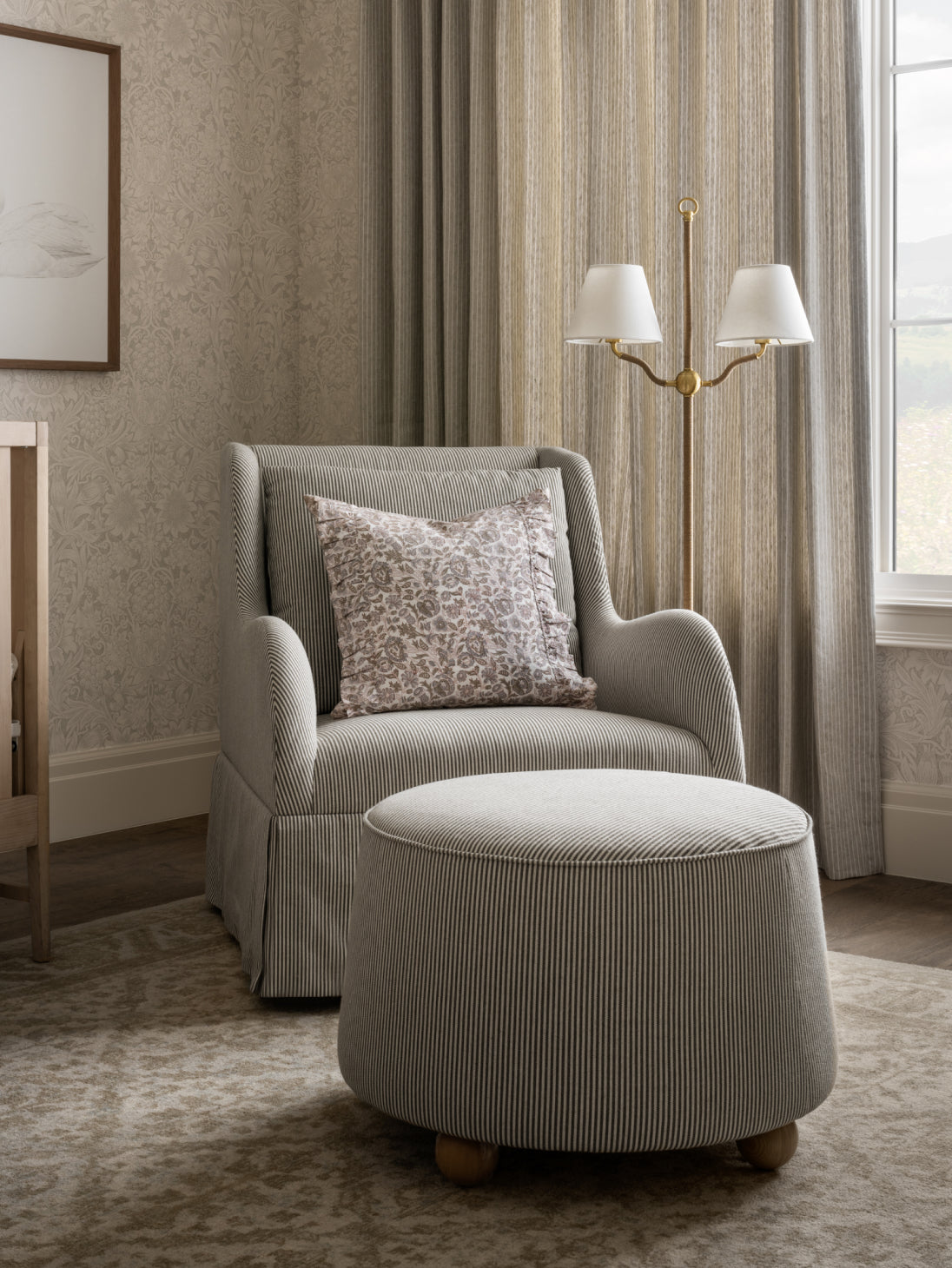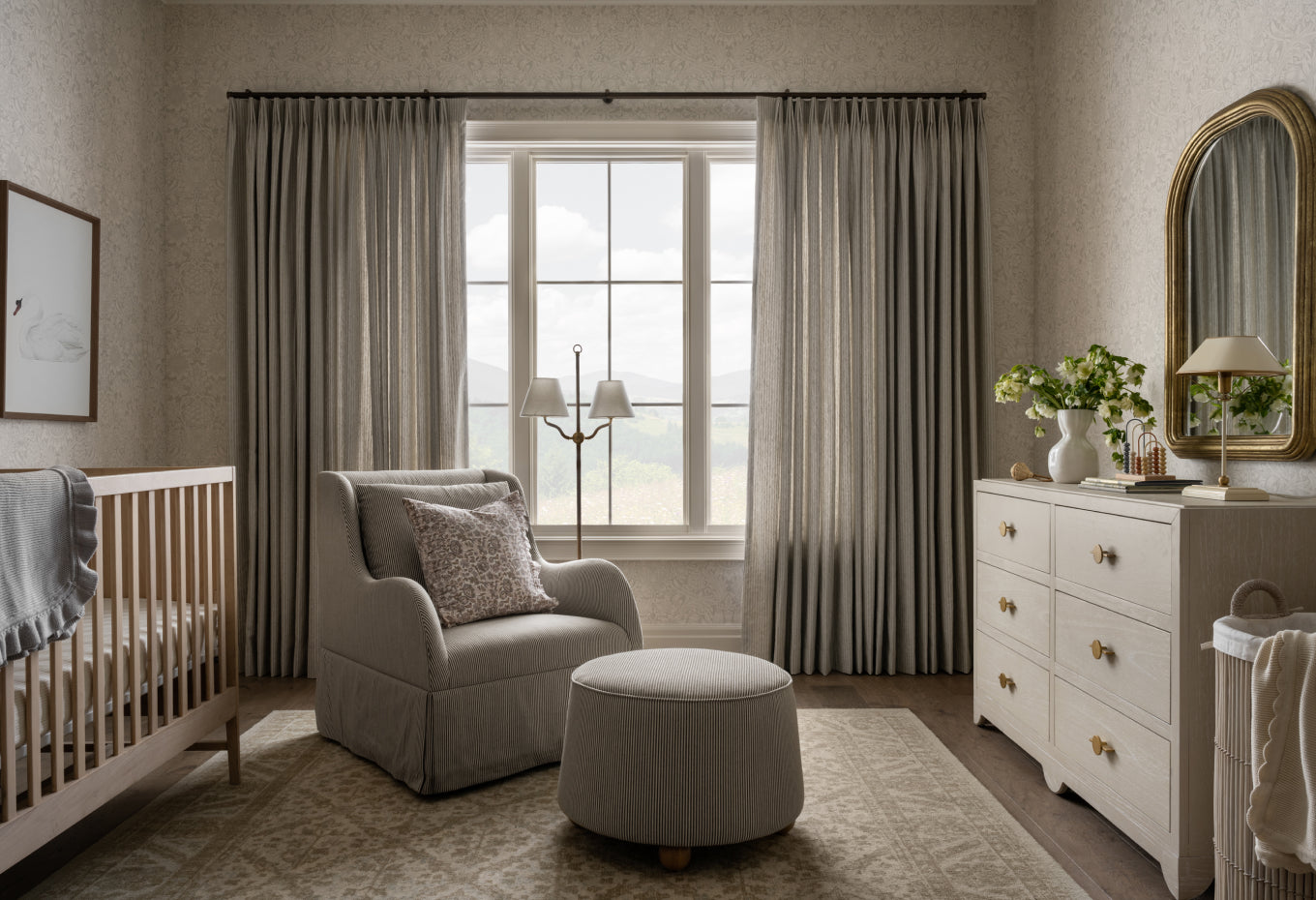 Layer romantic, classic details within a lighter color palette throughout the space. Let wallpaper and textiles create a comforting atmosphere with visual texture.