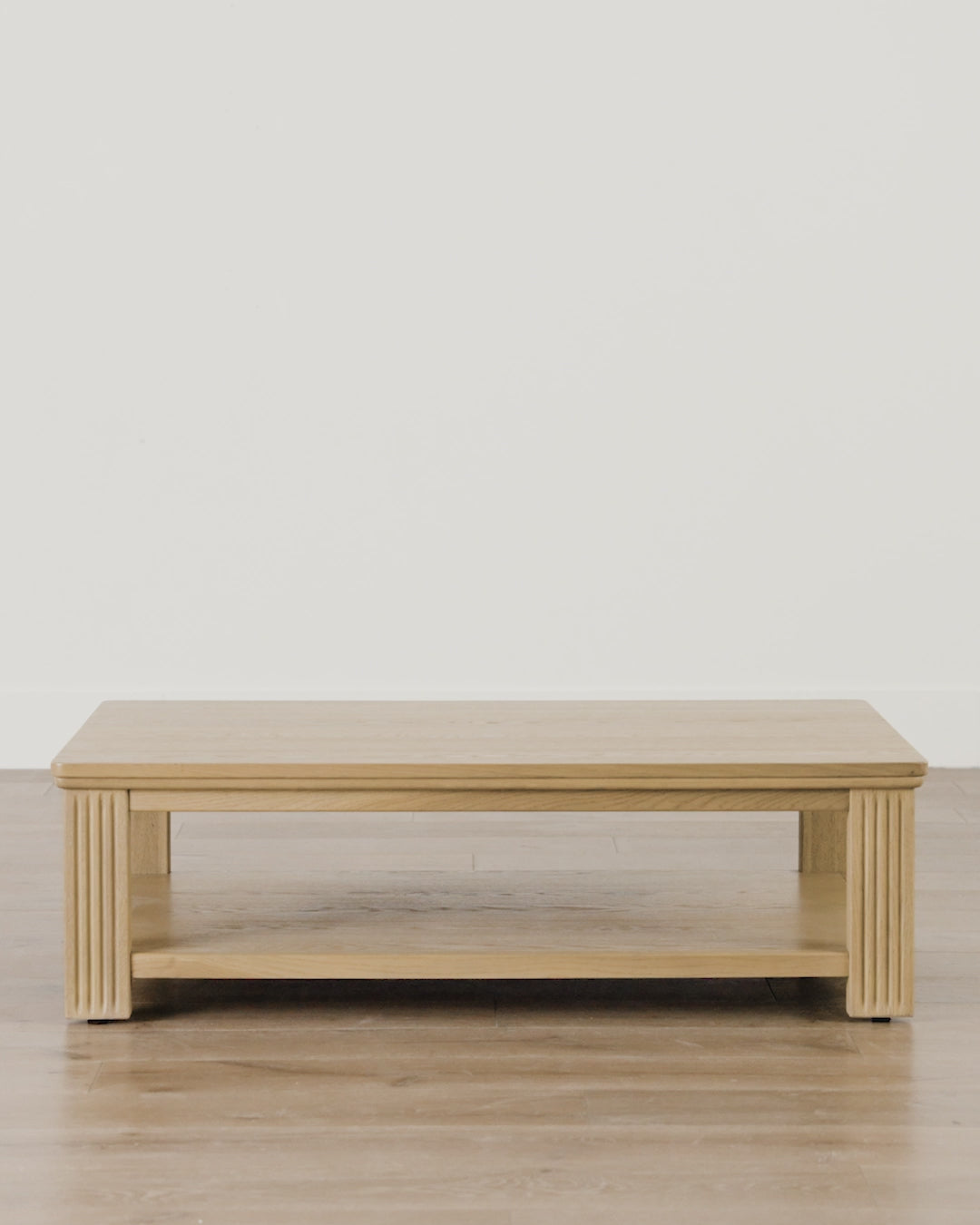 Featuring our exclusive Drift Oak finish, we designed the Ambrose Coffee Table to bring a traditional yet organic feel to your living room. The frame is adorned with vertical fluting and wire brushed for a textural look and hand feel, adding detail and character to its simple structure. With a long rectangular tabletop and a natural charm, the vintage-inspired coffee table is warm and inviting.