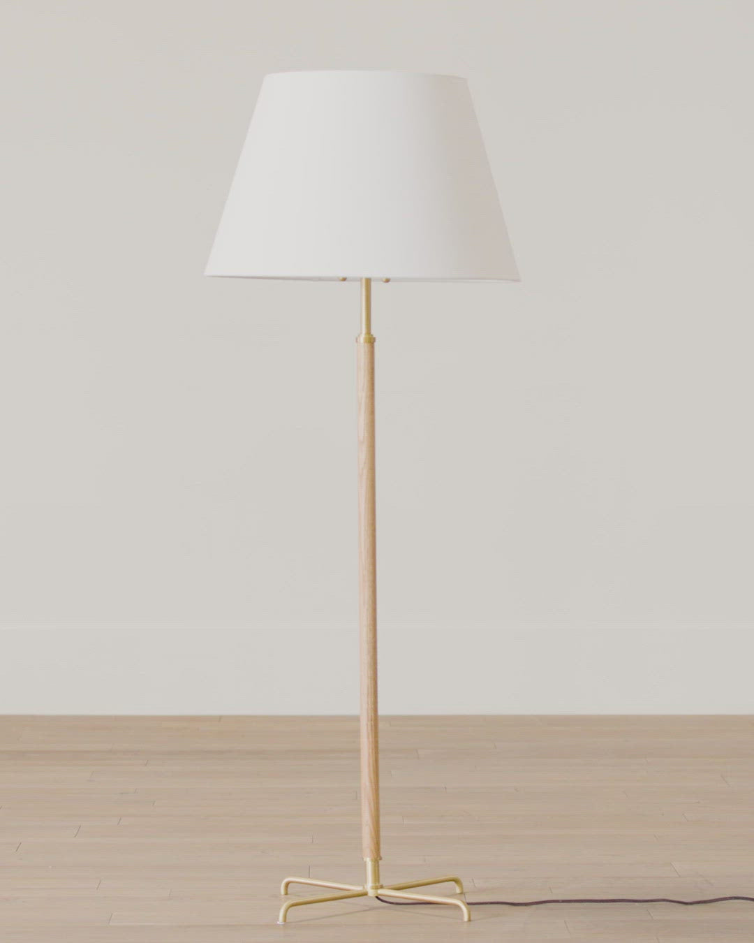 Simple but nuanced, the Florence Floor Lamp has a neutral palette that brings a sense of warmth to the room. With a body crafted from white oak, it is complemented by brass feet and a brass finial. Complete with a white linen shade, the Florence Floor Lamp is a beautiful study in material and hues.