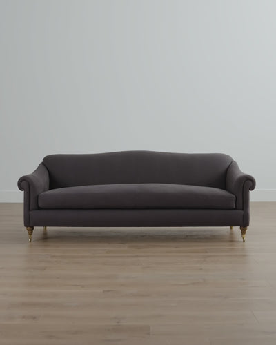 Blending modern and traditional design elements, our Hildegard Sofa 90" was designed with sophisticated lounging in mind. Its wrapped arms and camel back profile display masterful craftsmanship, while its single cushion design invites daily relaxation. From the bench-made alder frame to the down wrapped cushions, this sofa is the epitome of luxurious comfort. Customizable in a wide array of fabrics, you can make this handcrafted sofa your own.