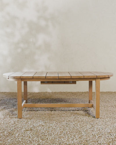 Designed with high-quality teak wood, the Linwood Extension Dining Table is an all-weather dining piece created to be both durable and beautiful. Featuring a tabletop of teak wood paneling and a self-storying butterfly extension leaf, this piece has an inviting, coastal feel. We designed our outdoor dining table with an extension to be easy to use—catering to your entertaining needs.